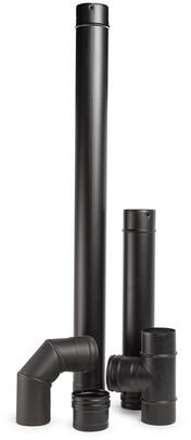 100 mm-es belső átmérőjű, porfestett fekete színű, 5 elemes füstcső készlet,  hőálló szilikon tömítéssel pellet kályha kémény csatlakoztatáshoz, 0,7 mm vastagságú rozsdamentes lemezből.